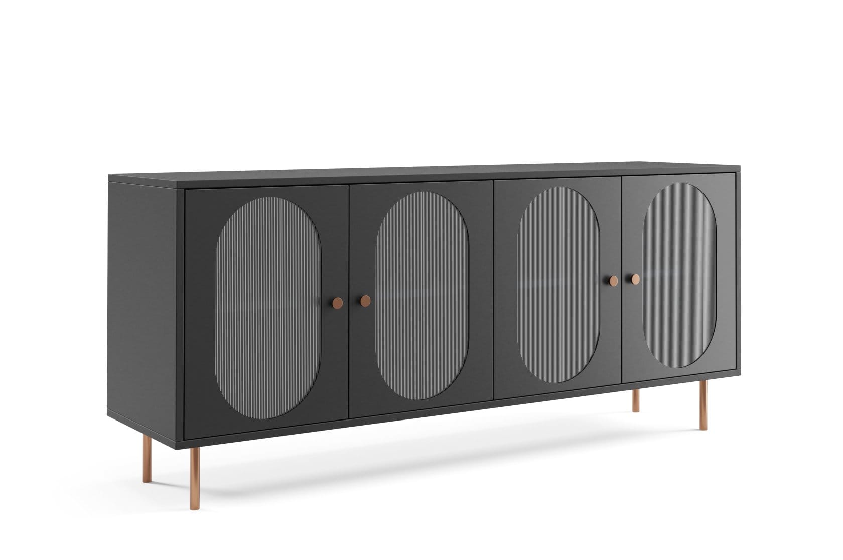fronty w kształcie zaokrąglonych owalnych paneli wprowadzają miękkość i harmonię do wnętrza. Idealne do