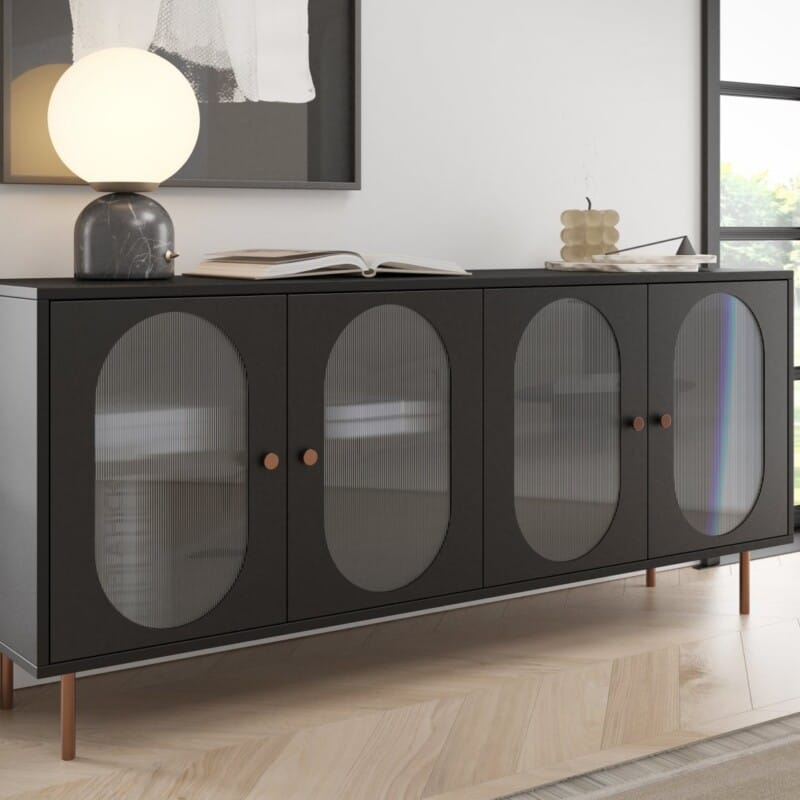 wnętrz w stylu glamour, nowoczesnym lub art deco. Doskonale sprawdzają się jako szafka RTV, element