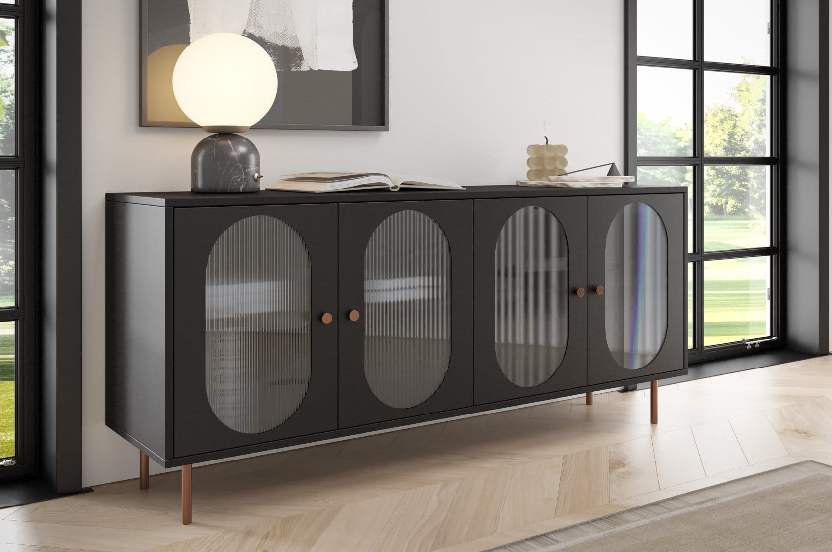 Komody z serii „Velvet” to połączenie klasycznej elegancji z nowoczesnym designem. Charakterystyczne