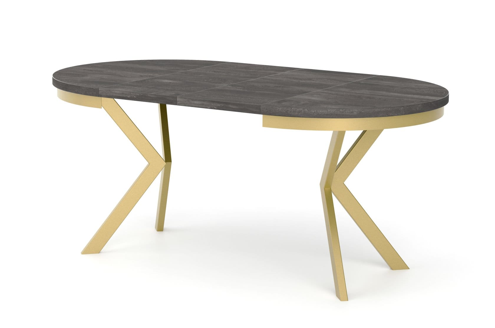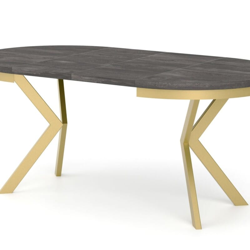 Rozkładany stół Edder z obręczą złoty idealnie sprawdzi się “między kuchnią a salonem”. Nowoczesna, industrialna bryła i solidne wykonanie zwrócą uwagę gości bez względu na to, w którym pomieszczeniu ich przyjmiemy. Obręcz maskuje prowadnice, a metalowe nogi sprawiają wrażenie, że stół wygląda na bardzo dostojny, a całemu wnętrzu nadają ekskluzywnego charakteru ze względu na złoty kolor stelaża.Dane techniczne:Stół wykonany jest z solidnej stali malowany proszkowoNogi mają szerokość 6×3 cm.Blat wykonany jest z płyty laminowanejGrubość blatu 36 mmGrubość okleiny PCV 2 mm