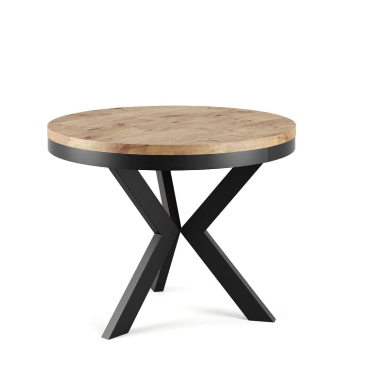 Stół Elve to okrągły stół loftowy, który sprawdzi się dla osób lubiących spędzać czas z grupą najbliższych znajomych w salonie ze względu na małą powierzchnię blatu.Dane techniczne:Stół wykonany jest z solidnej stali malowanej proszkowoNogi mają szerokość 8 x 4 cmRama pod blatem wykonana jest z profili 6 x 2 cmBlat jest wykonany z płyty laminowanejGrubość blatu 36 mmGrubość okleiny PCV 2 mm