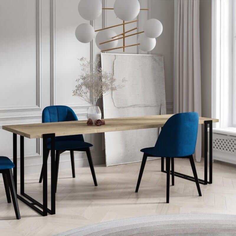 Stół HORTEN to idealne rozwiązanie dla osób lubiących połączenie klasycznej elegancji z designem. Absolutnie nada się do wnętrz w stylu loftowym. Złota podstawa doda błysku i przykuje spojrzenia innych. Doskonale sprawdzi się w jadalni, kuchni czy salonie. Dane techniczne:Stół wykonany jest z solidnej stali malowanej proszkowoNogi wykonane są z profila stalowego o wymiarach 40 x 10 mmBlat wykonany jest z płyty laminowanejGrubość blatu 36 mmGrubość płyty PCV 2 mm
