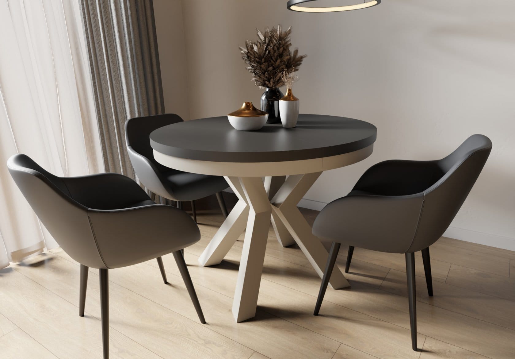Loftowy okrągły, stół Narvic jest pierwszym wyborem osób, które lubią mieć dom pełen gości – po rozłożeniu osiąga powierzchnię 176 centymetrów. Stół Narvik wygląda majestatycznie, dzięki niemu Twój salon czy jadalnia nabierze imponującego charakteru. Dane techniczne:Stół wykonany jest z solidnej stali malowanej systemem proszkowymRama pod blatem wykonana jest z profili 6 x 2 cm.Blat wykonany jest z płyty laminowanejGrubość blatu 36 mmGrubość okleiny PCV 2 mm