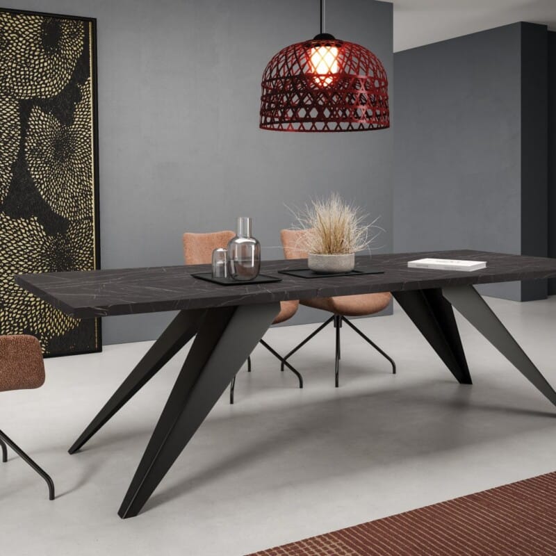 Stół VENTO to wyjątkowy mebel, który łączy funkcjonalność z nowoczesnym designem – idealny do Twojego wnętrza. Stabilność stołu gwarantują solidne nogi, które tworzą nowoczesny klimat w pomieszczeniu. W połączeniu z stolikiem kawowym ARIA tworzą harmonijny wystrój wnętrza.Dane techniczne:Stelaż wykonany jest ze stali malowanej systemem proszkowymBlat wykonany jest z płyty laminowanejGrubość blatu 36 mmGrubość okleiny PCV 2 mmMożliwość wykonania czarnego obrzeża