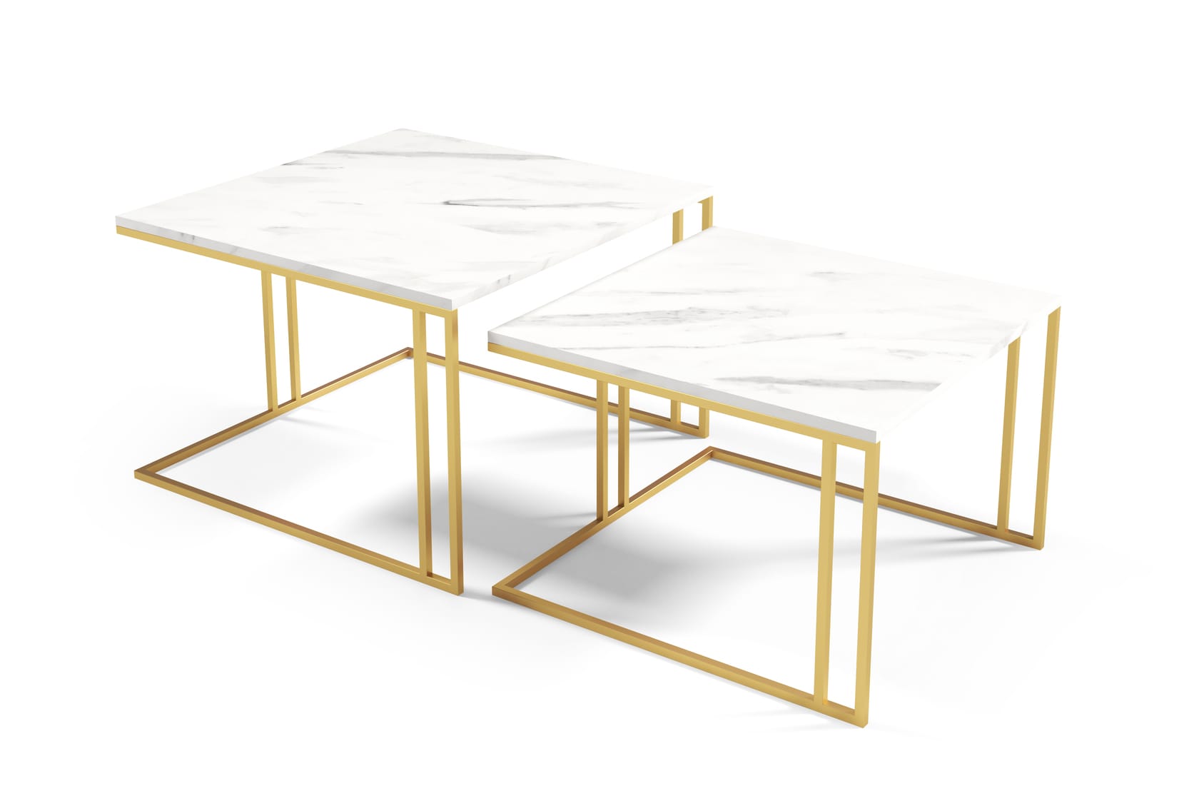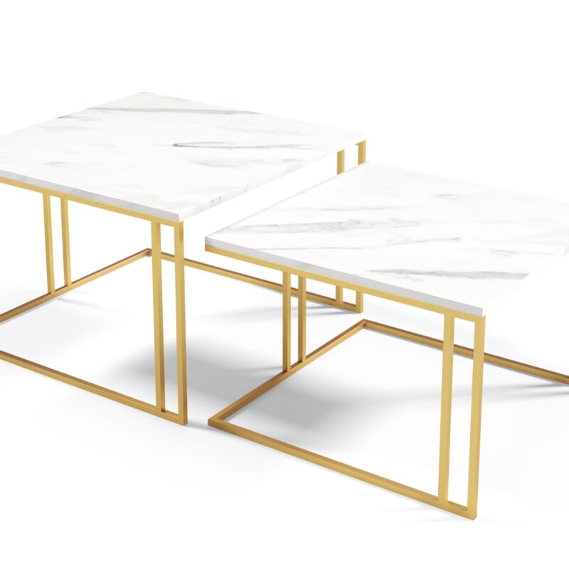 Stolik kawowy Astro złoty idealnie pasuje do wnętrza w stylu loftowym – to praktyczny element dopełniający wyposażenie każdego pomieszczenia. Zestaw składa się z jednego większego i drugiego mniejszego stolika. Takie połączenie świetnie ze sobą współgra oraz pozwala z łatwością na schowanie mniejszej ławy pod większą. Dzięki takiej kompozycji pozwalają stworzyć funkcjonalną przestrzeń służącą do spotkań z rodziną i relaksu. Dane techniczne:Stolik wykonany jest z solidnej stali malowany proszkowoNogi mają szerokość 1,5 x 1,5 cmBlat wykonany jest z płyty laminowanejGrubość blatu 18 mm, grubość okleiny PCV 2 mm