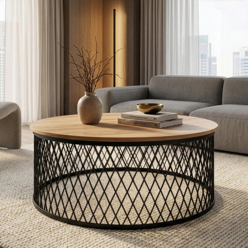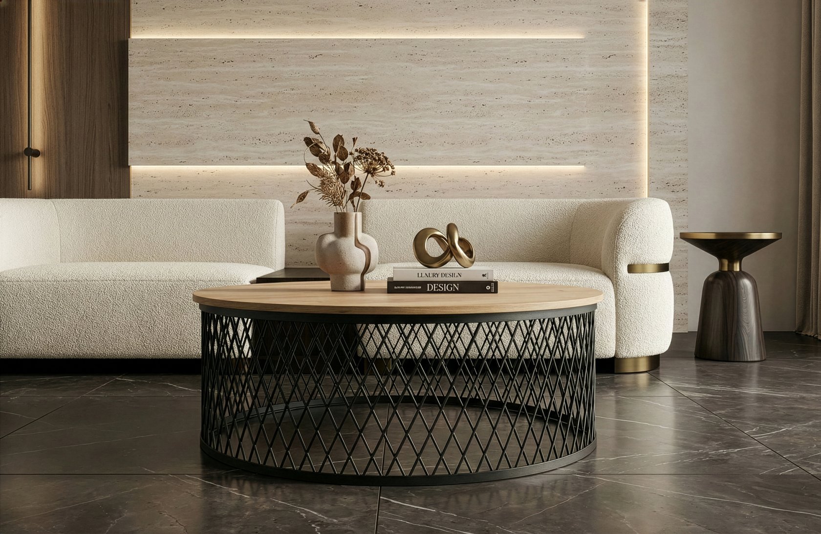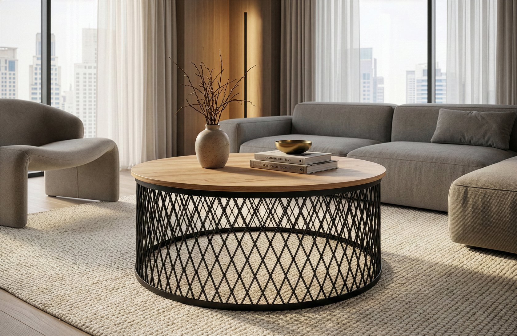 RUNA o okrągłym blacie i lekkiej, ażurowej podstawie wyróżnia się